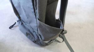 サイドには水筒ボトルを入れられるポケットが。こちらも大きなサイズで、バッグの内容量によっては2Lのペットボトルも収まります。