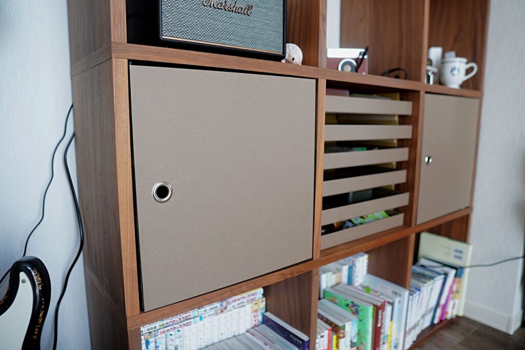 同じカラーでフラップを揃えるも良し、複数のカラーで華やかにするも良し。自分好みのシェルフに仕上げられます。