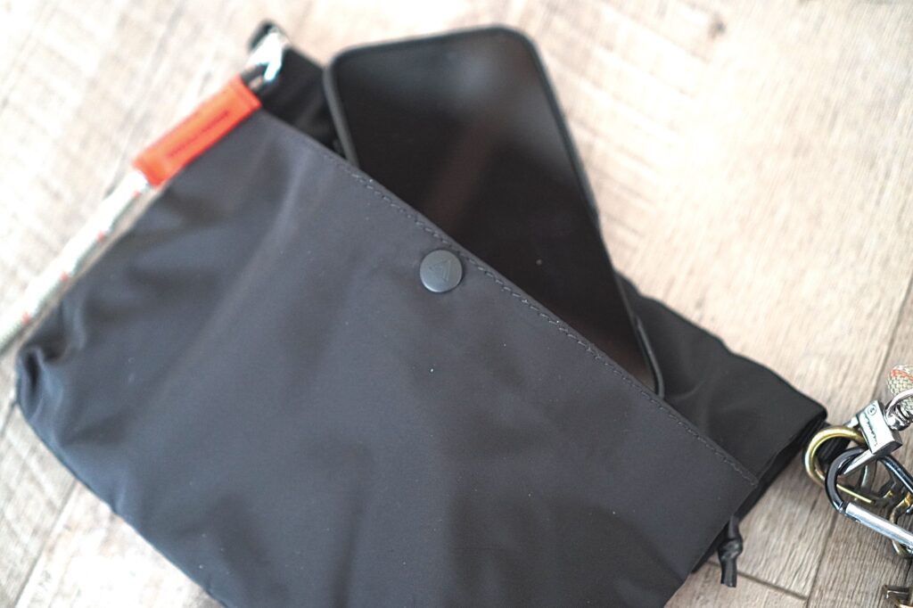 このポケットはiPhoneがすっぽりと収まるサイズ感です。